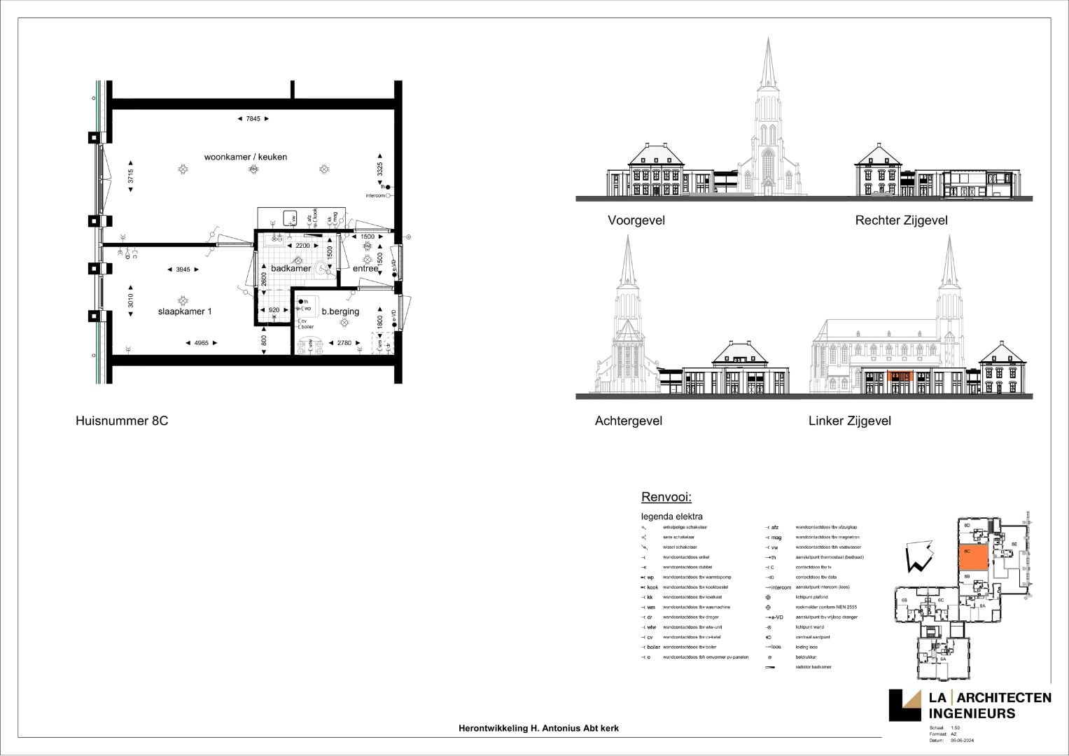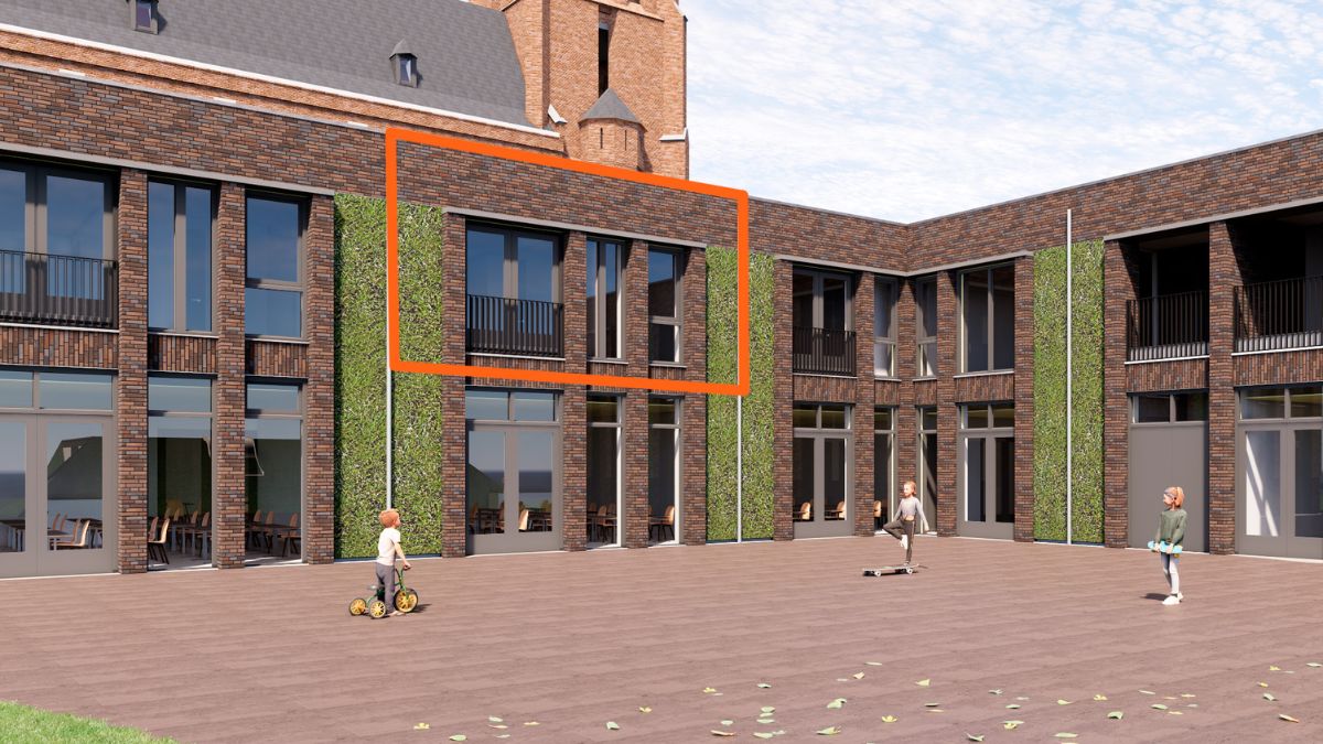 Gelegen op de eerste verdieping van het nieuw te bouwen complex naast de kerk pastorie. De voorzijde van het gebouw krijgt een nieuwe versie van de oude pastorie. In de Kerk komen 3 bijzondere appartementen. Tussen de kerk en de pastorie bevinden zich 5 wat moderner vormgegeven appartementen op de eerste verdieping. Ontsloten via een trap en een lift.