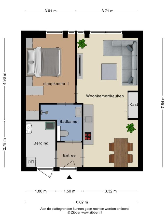 De totale oppervlakte bedraagt 53 m2. Deze woning wordt uitgevoerd met een zogenaamd frans balkon, een slaapkamer en een inpandige berging. Efficiënt ingedeeld. Verder is er in de externe gemeenschappelijke fietsenberging met plaats voor 2 fietsen; behorende bij deze woning.